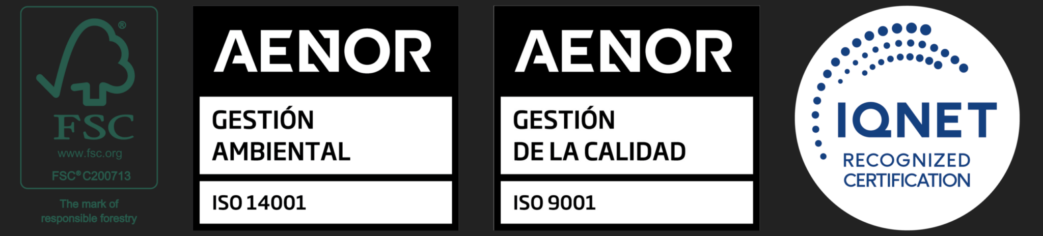 • Certificación FSC ® – Avala que los materiales que utilizamos provienen de fuentes responsables y gestionadas de manera sostenible, contribuyendo a la preservación de los ecosistemas forestales.